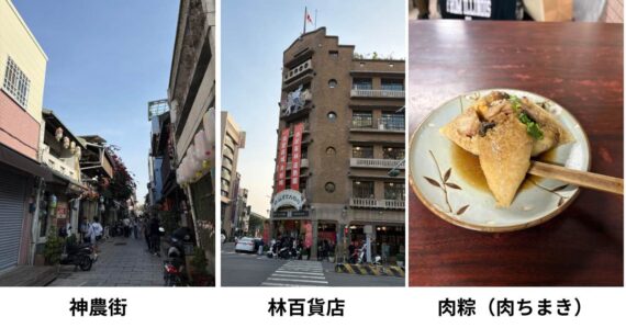 安平区からバスで台南中心部に戻り、神農街や林百貨店、赤崁楼などを見て回りました。最後は肉粽(肉ちまき)を少し早めの夕食にして、台湾高鐵で台北へ戻りました。