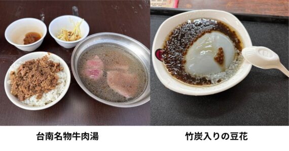 台南では名物の牛肉湯と、竹炭入りの豆花を楽しみました。